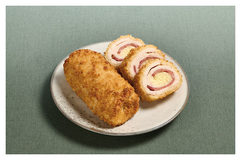 Le Roll de poulet au comté servis avec des frites